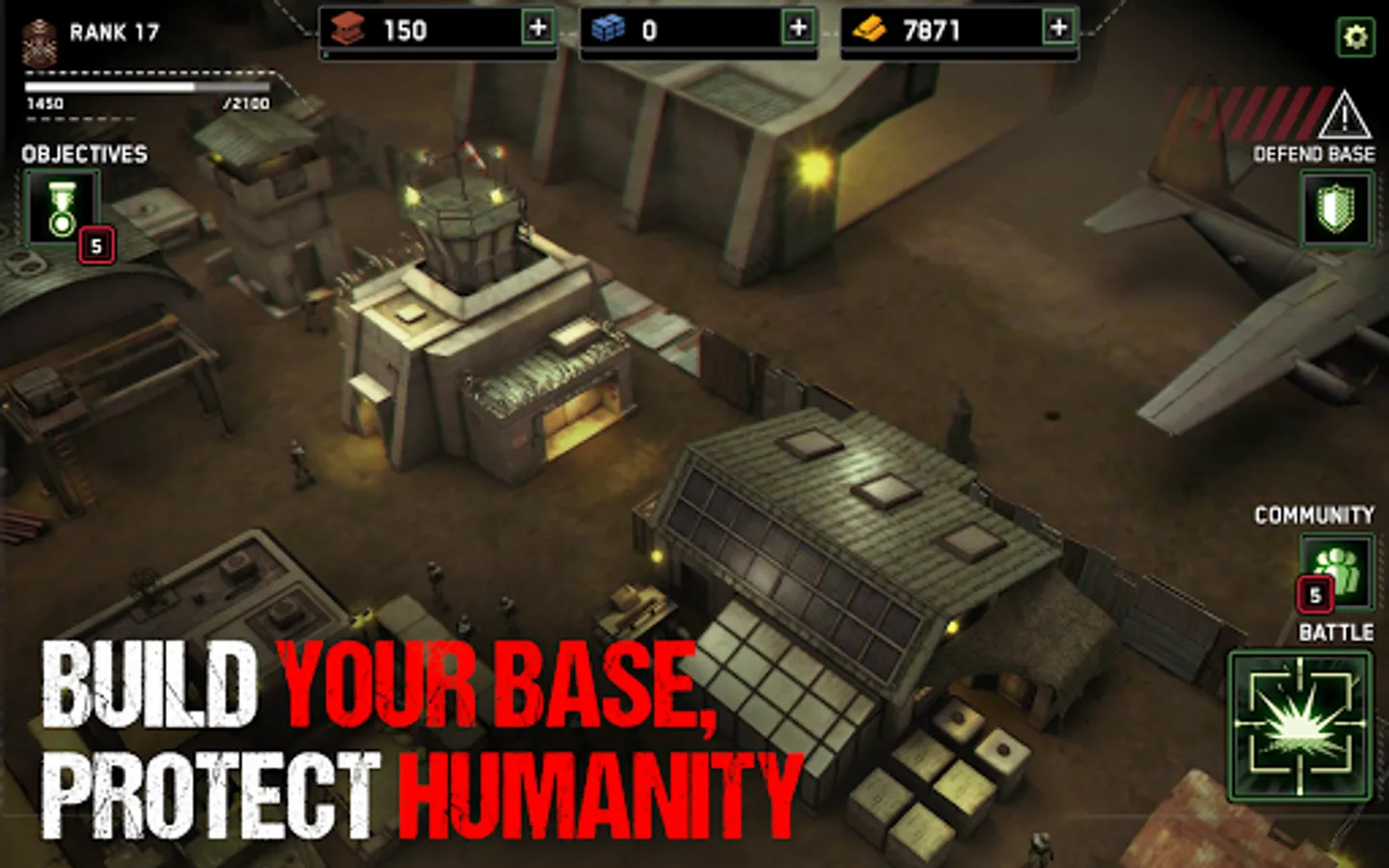 • Collect resources and rewards to strengthen your base's defenses and hold off zombie invasions.