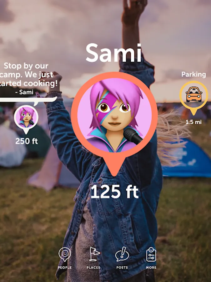 Simply pan around with your camera viewer and see graphical markers, AR pins that show you how far away someone or something is and the direction to walk in.