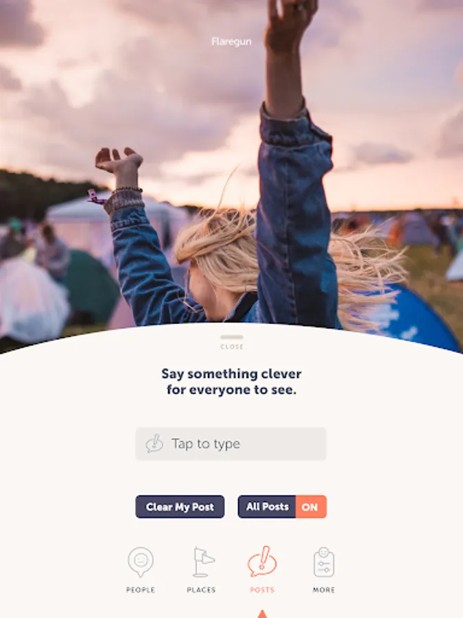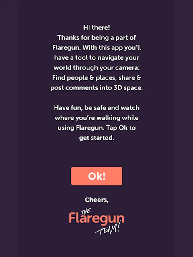 •Posts- Public comments that you can drop where you are and everyone else on Flaregun can see them in 3D space around you in a public forum. Say something. See it floating in the AR Airspace where you posted it.