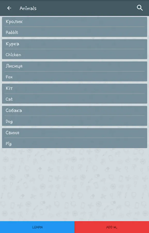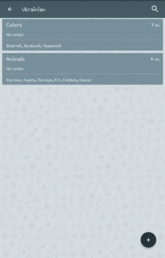 In our application, you have an opportunity to sort words by languages and cards (topics). In each card you can add unlimited number of words and teach them with proposed modes.