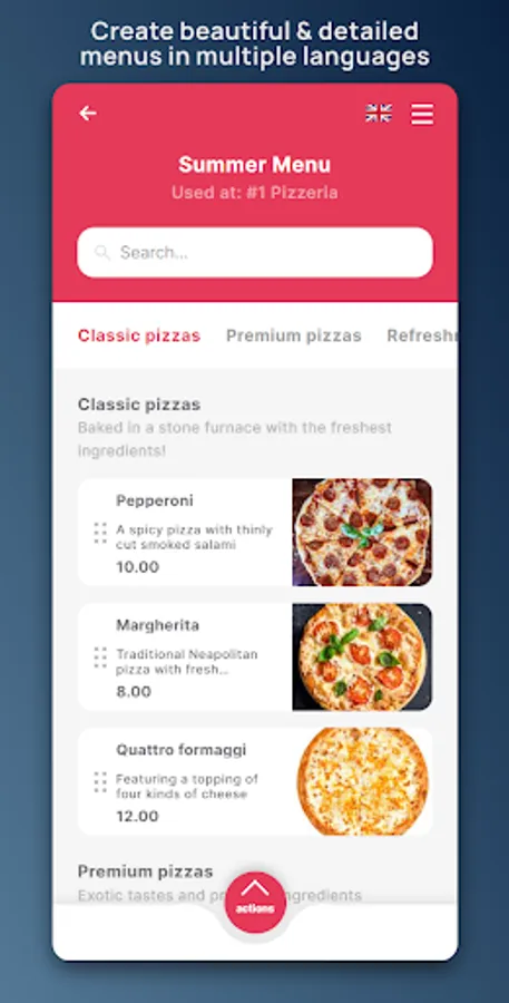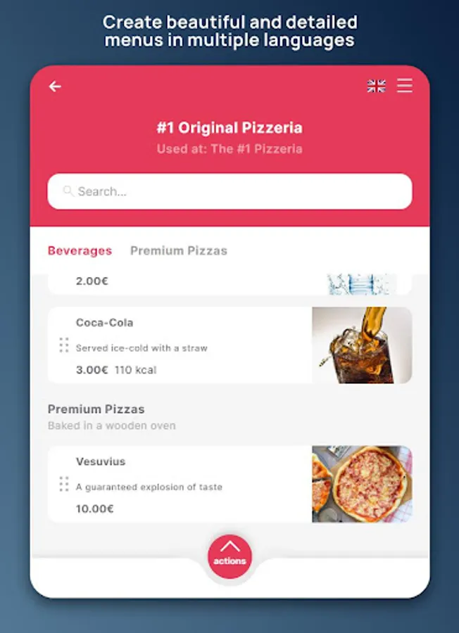- Create digital menus in as many languages as you want and take control over every detail. Add unlimited products with photos, modify categories, options and choices.