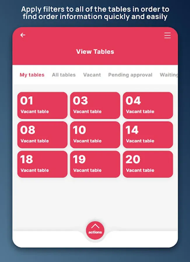 - Choose which tables are yours and inspect them to see details about the orders. Access the complete table order history with a single click!
