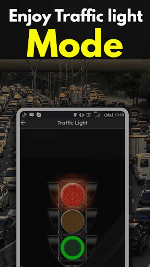 By using this super bright blinking LED flashlight you can educate your children about traffic signal light because in this super brightest torchlight we are giving free traffic signal blinking lights. You can use traffic light screen to educate your children how traffic lights works. This LED flash light and torch light App with traffic signal lights turn your mobile camera into multiple color screen in RED, YELLOW and GREEN color lights.