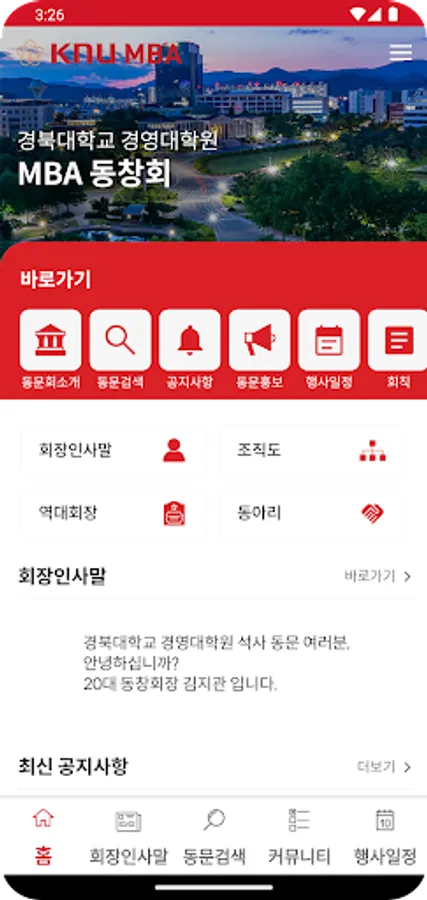 ※ Only members registered in the Graduate School of Business Administration (MBA) Alumni Association of Kyungpook National University can use it.