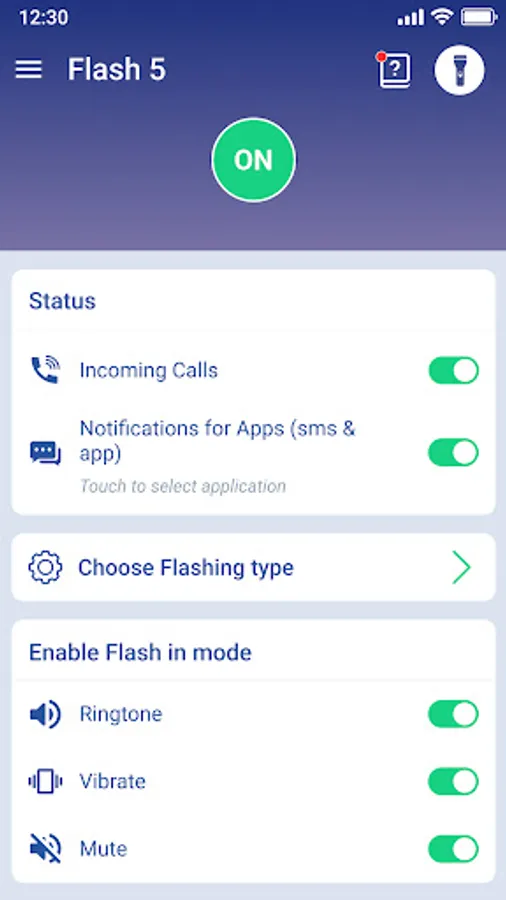 Flash 5 is one of the top useful applications that should be available on Android phones. When an incoming call or message arrives, the Flash of the phone will blinks to signal.