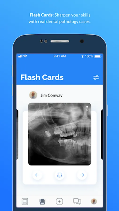 FlashpathDMD is a study aid for dentists to improve their ability to recognize and accurately diagnose oral pathology. Cases are crowd-sourced via a Social Media platform enabling dentists to present cases with confirmed diagnoses in a HIPAA compliant manner. Cases are viewed by users either as a news feed or as flash cards enabling users to sharpen their diagnostic skillset. Individual diagnoses can be searched to provide more targeted study. Anyone can download the app and review cases, but only licensed doctors may post cases. FlashpathDMD is committed to helping the dental profession and therefore a portion of the proceeds will be awarded to randomly selected users for the purpose of paying off student and professional debt.