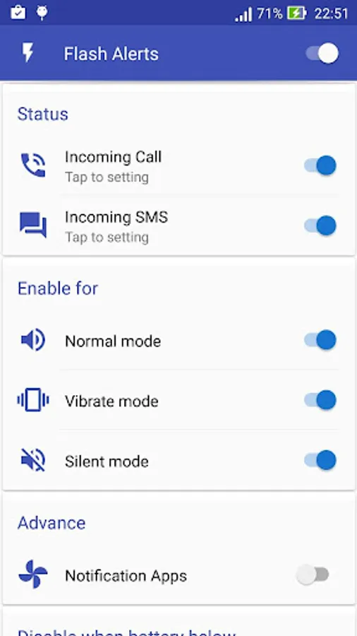 ✔ Turn off flash alerts automatically when battery is low , help you save more battery