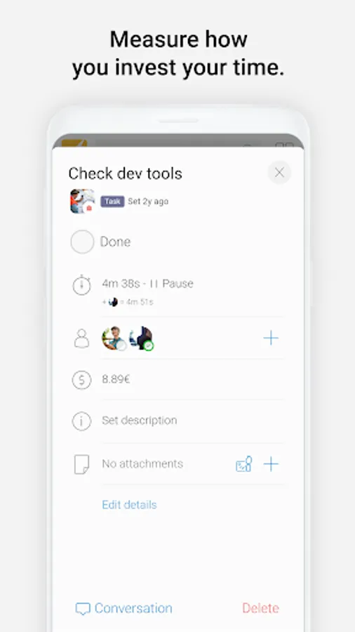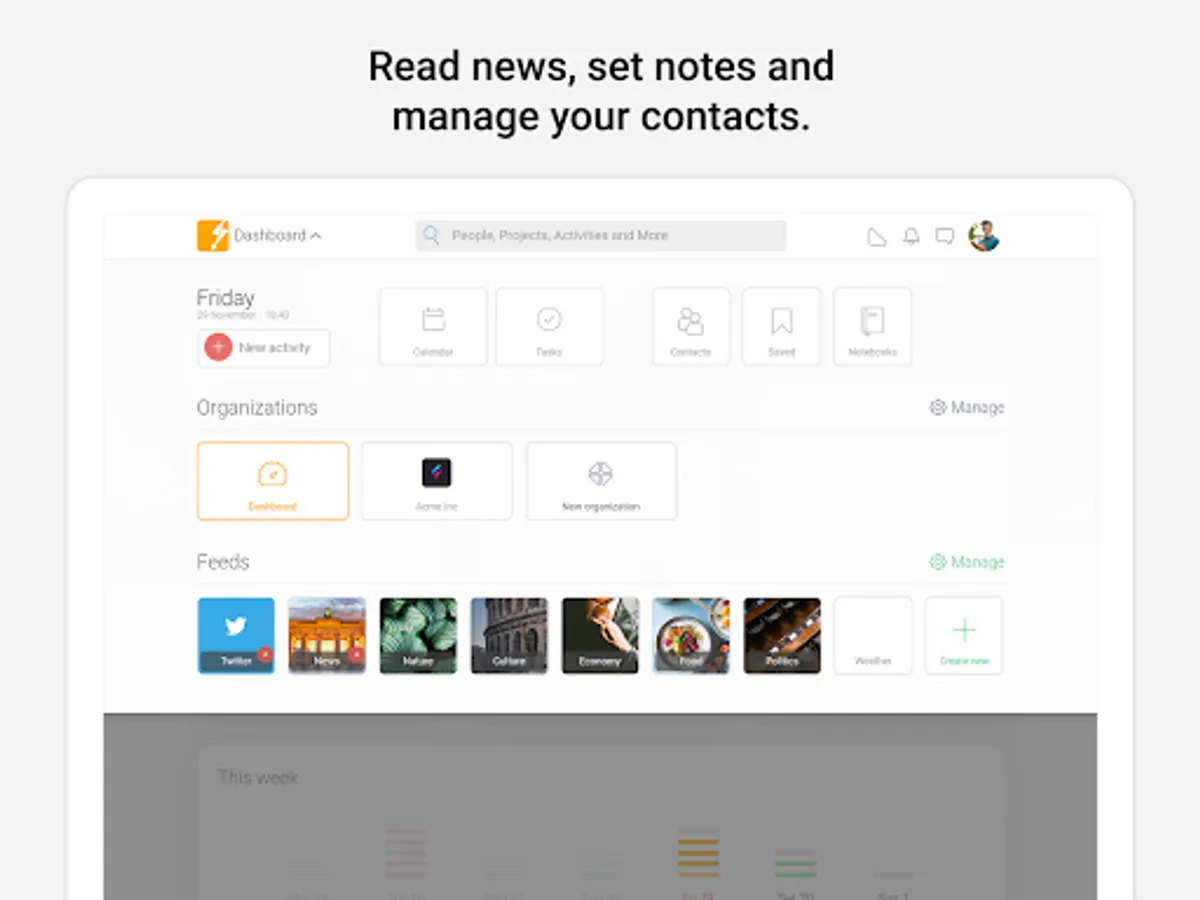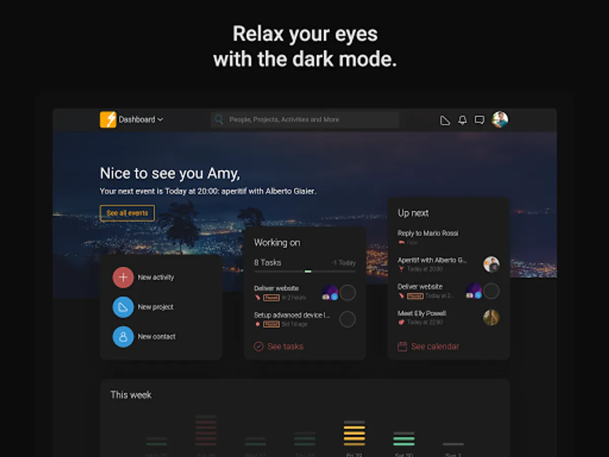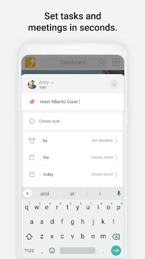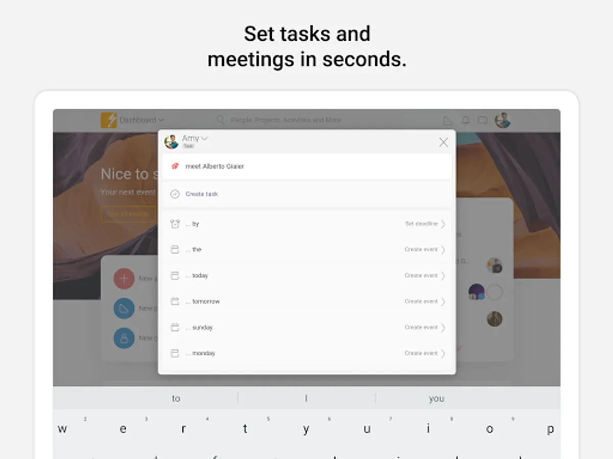Everything you do and have to do is summarised in your dashboard. It's the place where you start to work everyday: your tasks, appointments and work-time analytics are all in one place, helping your mind to focus just on what’s next.