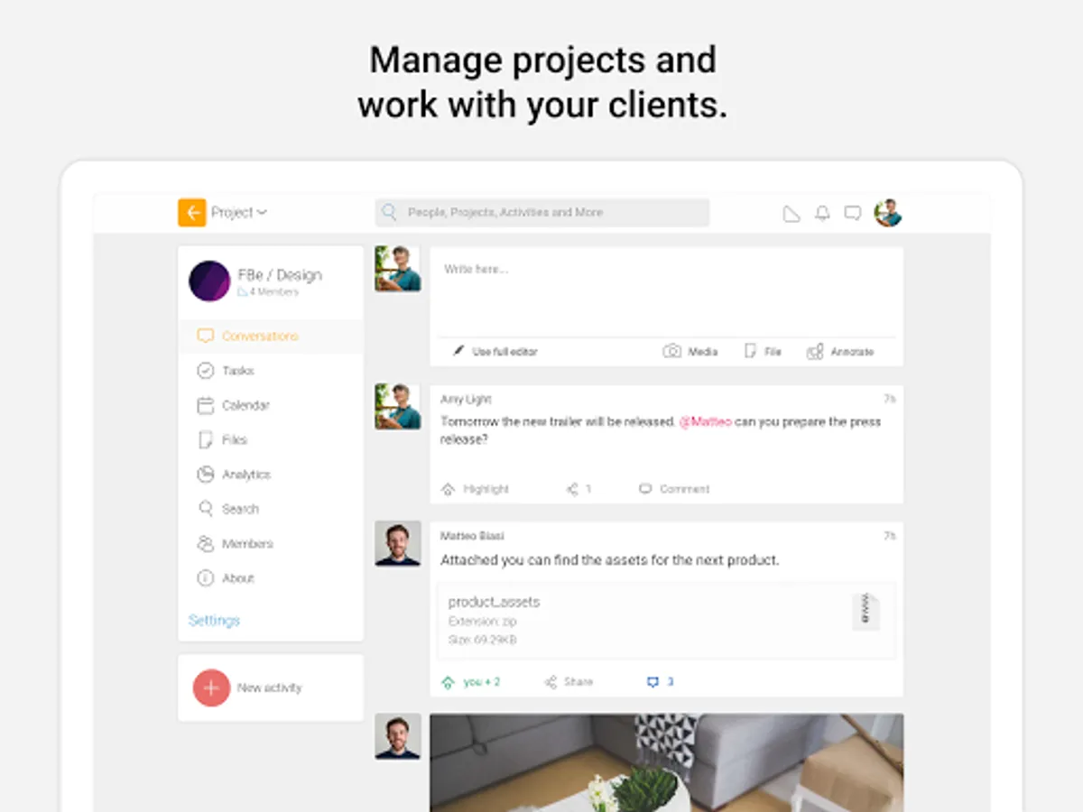 You can easily share projects with other freelancers or with your clients. Just add them as members; everything you do will be then notified by email. They can interact with you just by replying to the emails. Their messages will be automatically included in the platform. You use FlashBeing, doesn't matter what the others do!