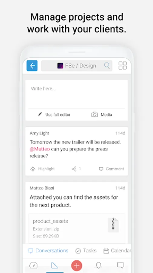 Tired of using everyday dozens of tools to organize your work? FlashBeing helps you to do this all in one place, while also letting you to collaborate with other smart workers and with your clients.