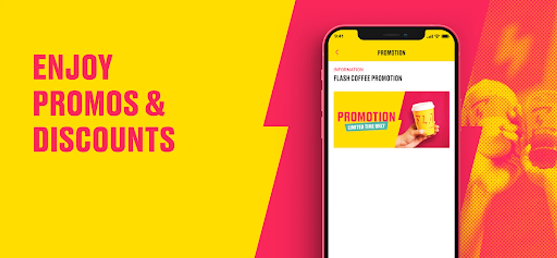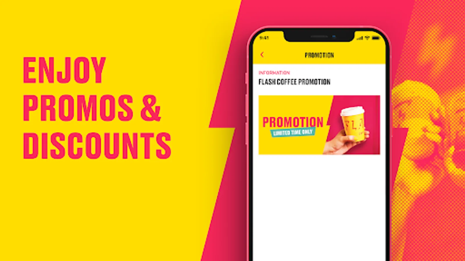 Download Flash Coffee app to order your coffee on-the-go and pick it up at one of our iconic yellow stores or have it delivered directly to your doorstep. Get access to promotions, instant cashback on every purchase and loyalty rewards.