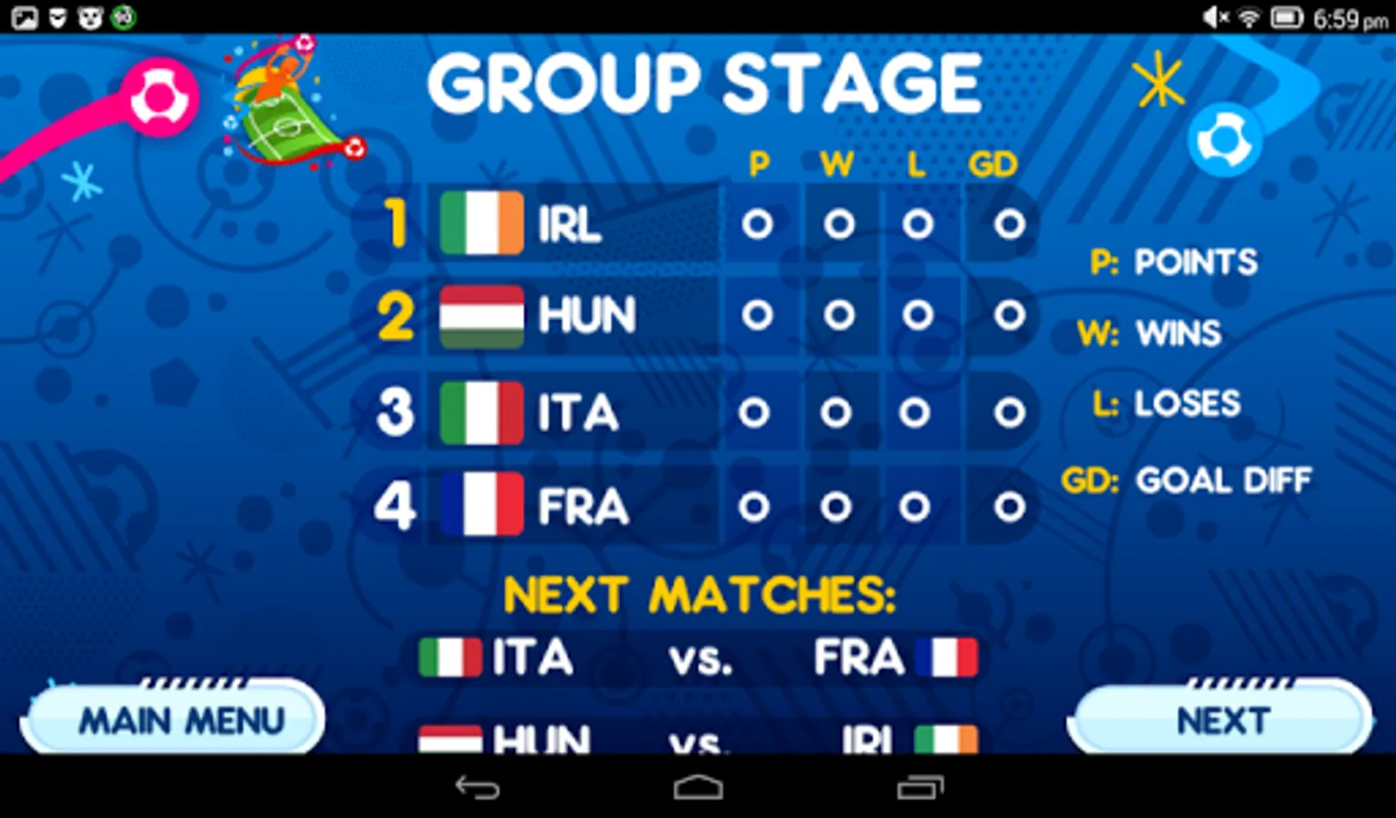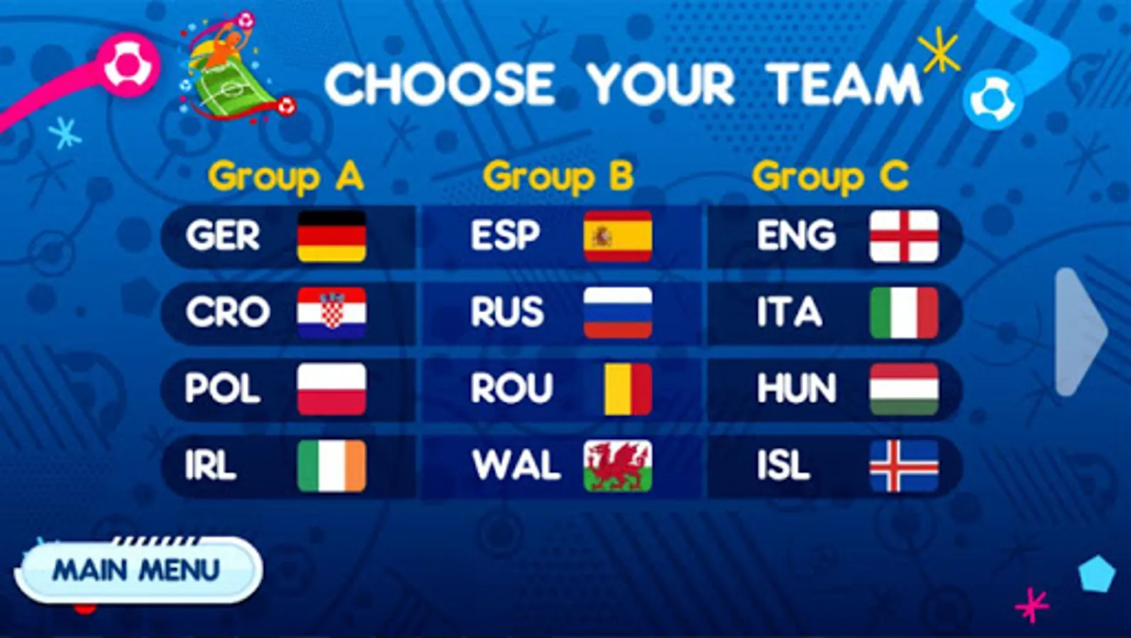 The competition has two parts - group and knockout phase. To qualify for the 1/8 finals, you need to be either 1st or 2nd in your group. After that, no mistakes are allowed if you want to win the Euro cup.