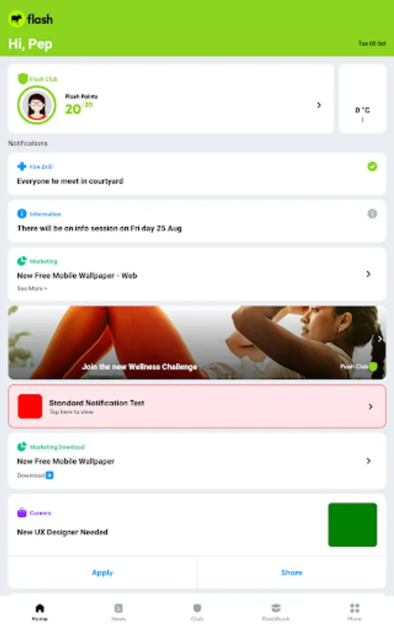 • Flash Club: Flash Club submissions, rewards, progress tracking, and real-time notifications