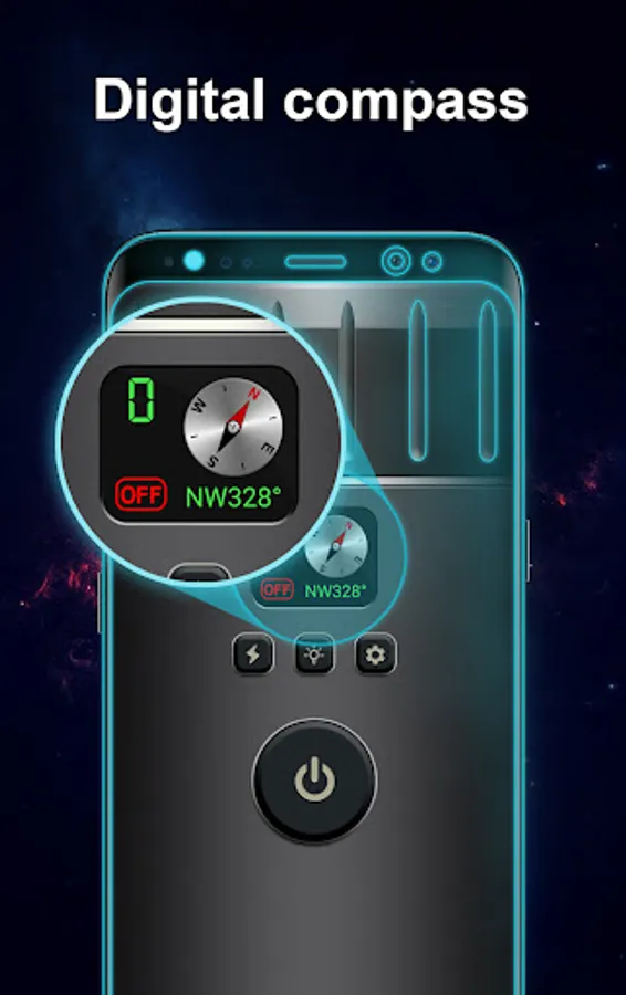 - Digital compass flashlight for you to determine the direction (note: some phone models do not support digital compass)