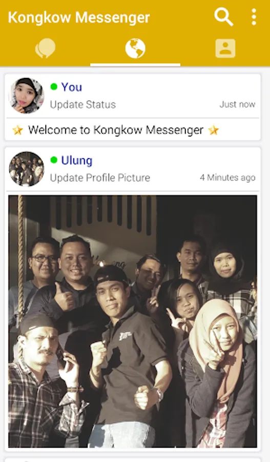 By using Application Kongkow Messenger, users can publish personal profile AUTOMATICALLY to all his contacts, either Pictures / Photos profile, and status messages via Kongkow Messenger application, so contact your friends can know what you Do, Think or Feel.