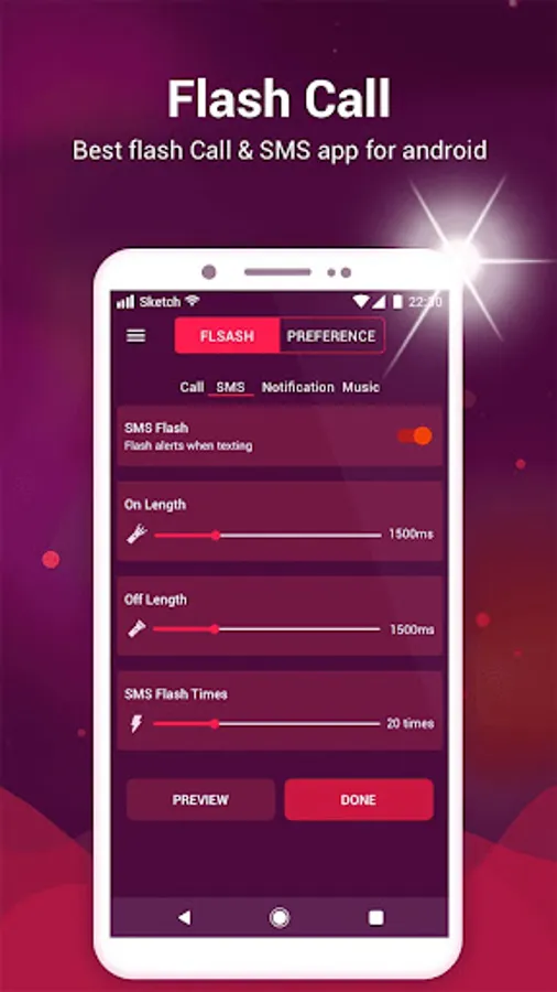 Best free flashlight notification: Automatic blinking flashlight on call and sms. Enable blinking camera LED flashlight for incoming calls, sms and notifications with color flashlight. When device is ringing or receiving a new SMS or MMS message is received brightest flash notification blinking alert notify you and turn on flashlight. Color flashlight alerts on call is a smart tool to remind you of incoming call or SMS with camera flashlight, blinking flashlight. So this flash on call and ultimate flashl alerts on SMS notify you clearly by flash blinking with LED torch light.