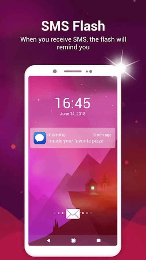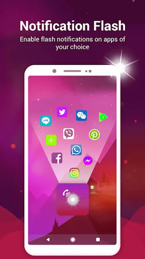 β Turn on flashlight, flash notification can be set to work in any phone mode ( Ring, Vibrate, Silent )