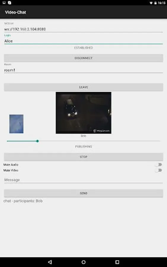 This example can be used to participate in video chat for two users on Web Call Server and allows to publish WebRTC stream.