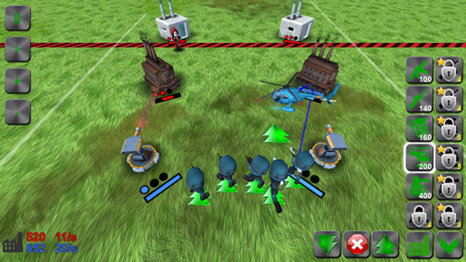 Fast paced RTS gameplay without complicated resource management or cumbersome controls. Units will advance and attack on their own or you can take control and direct them