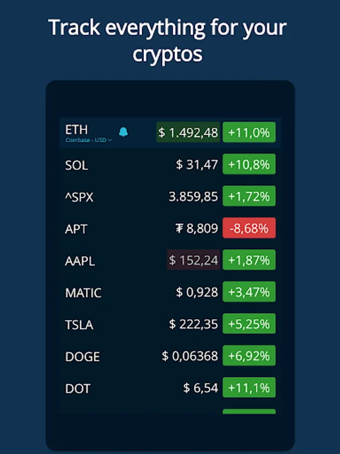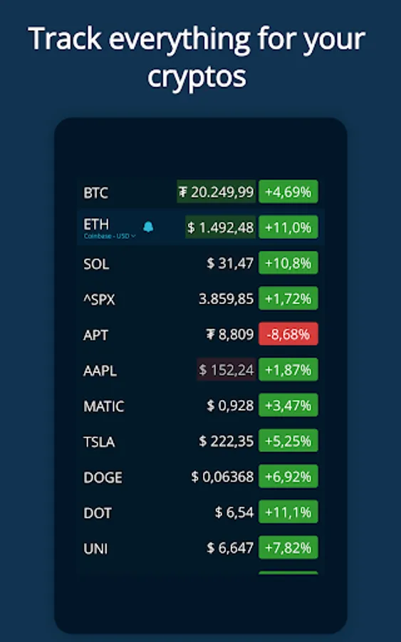 Get your hands on simple navigation, customizable charts & seamless wallet integrations with various crypto exchanges such as Binance.