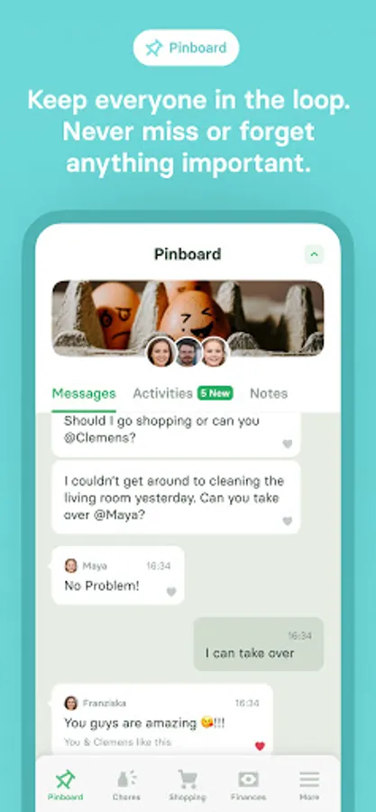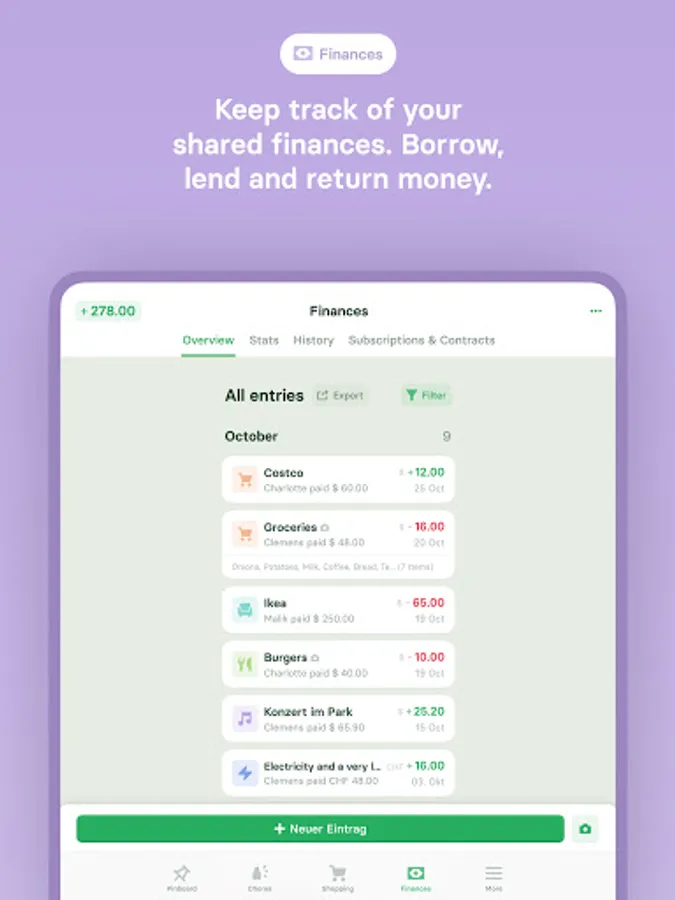 You want to cook together? Parents are coming to visit? What’s the estate agents number? The shouts are a chat feature optimized especially for your flat-share. Always available, always up to date.