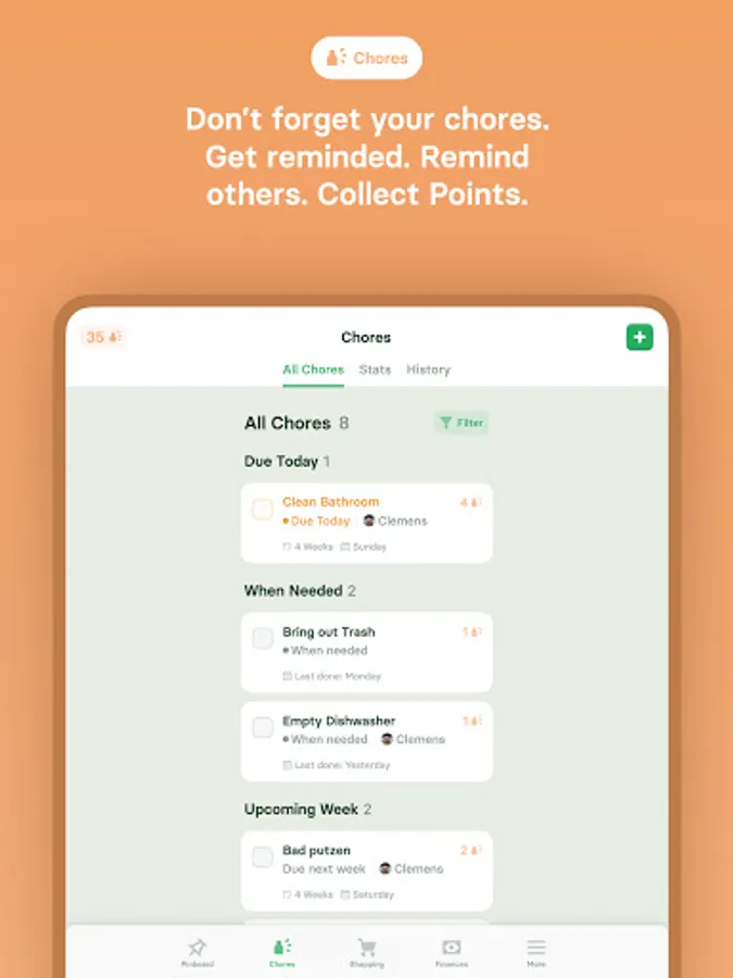 Cleaning plan - Get a reminder, remind others and share your appreciation.