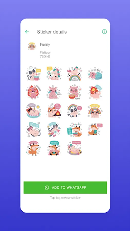 1) Open the app on your phone, select a sticker pack and tap “Download”.