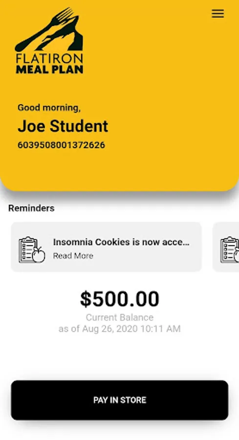 - Check your Flatiron Meal Plan balance