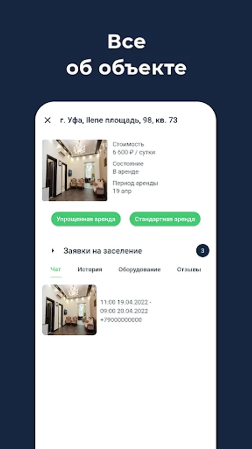 Be confident in the people who rent your apartment. The service allows you to request personal data of the client and conduct correspondence in the Personal Account.