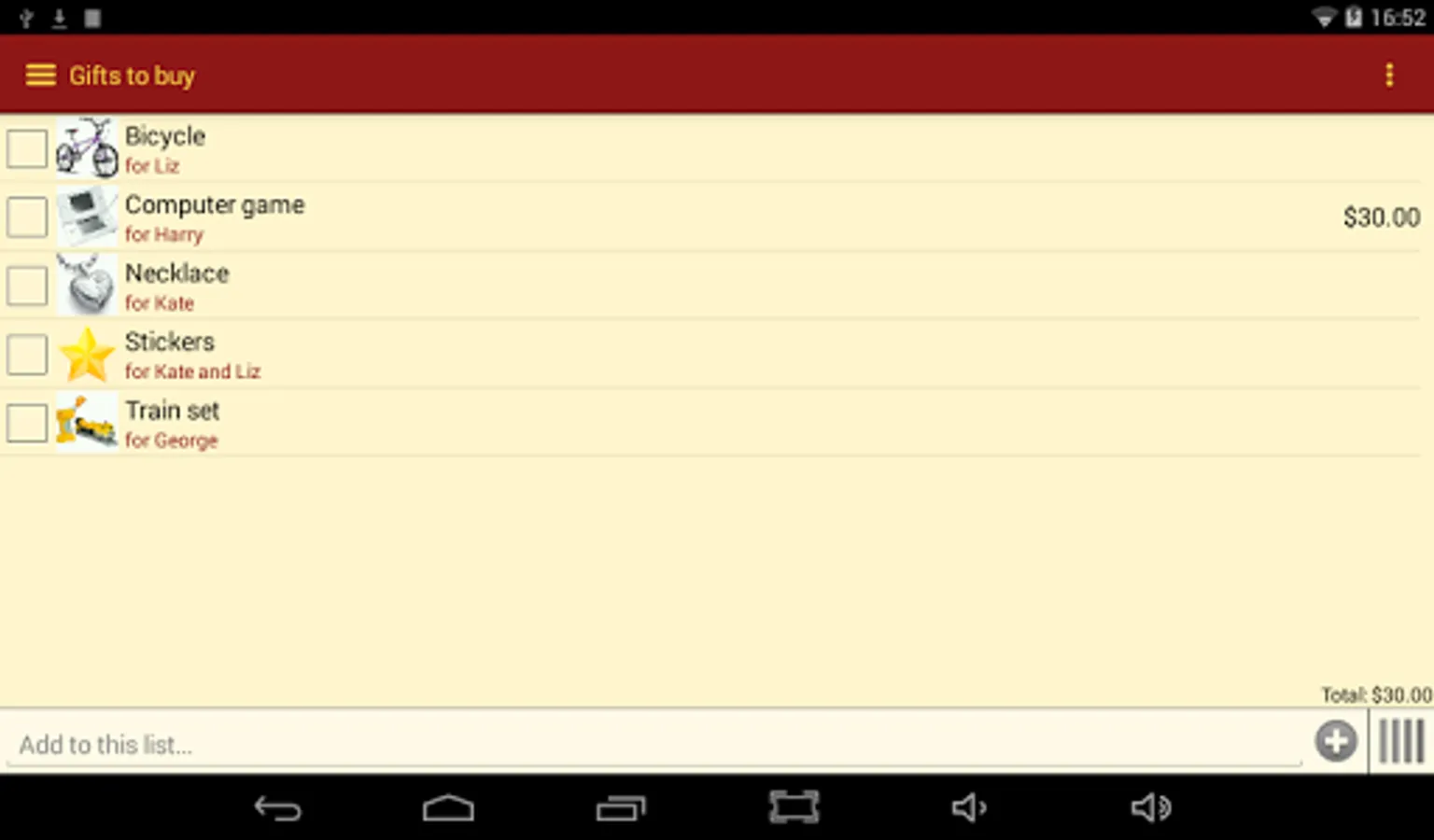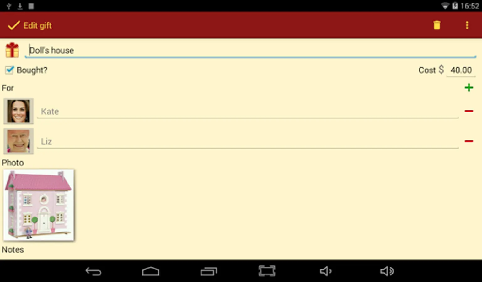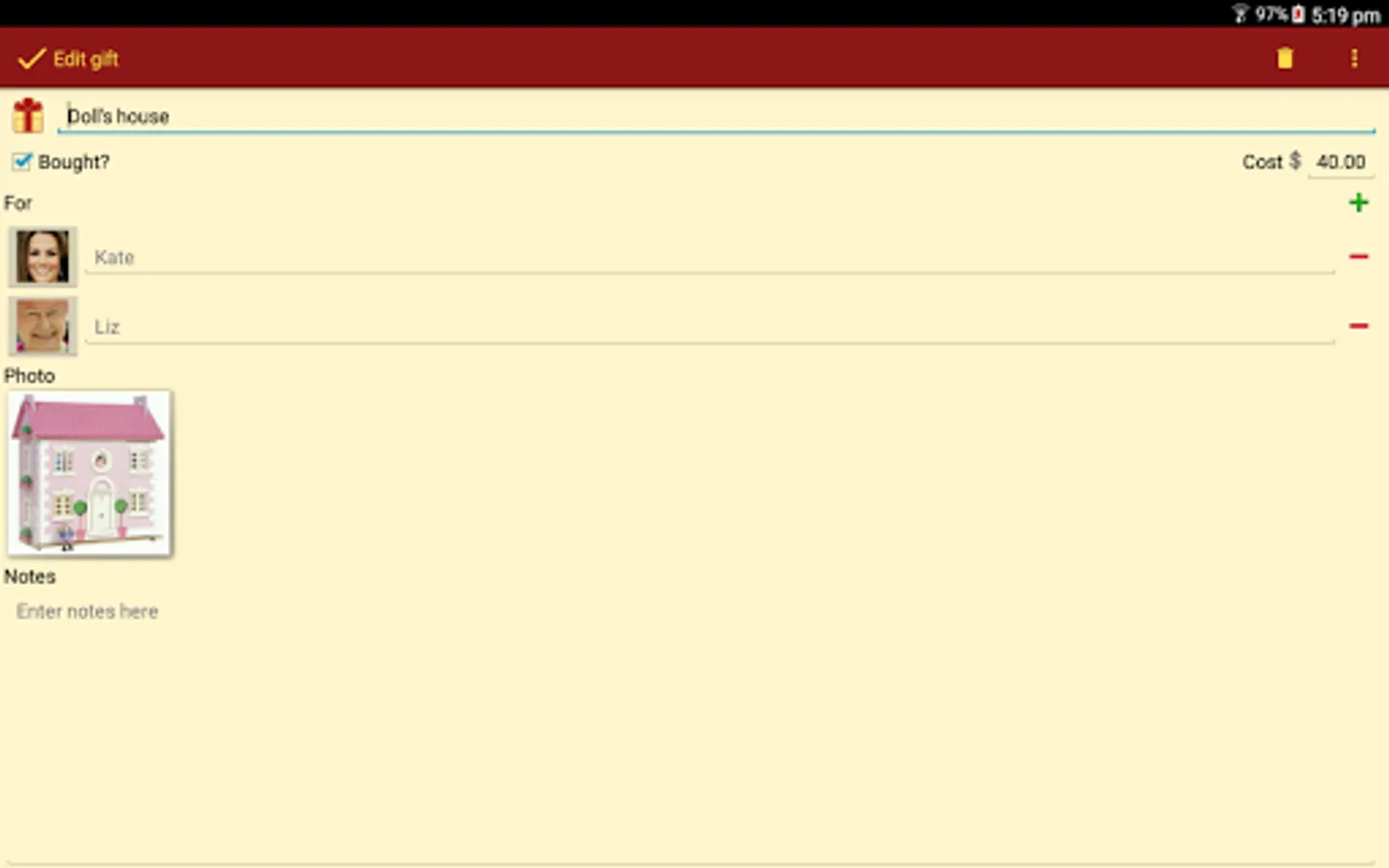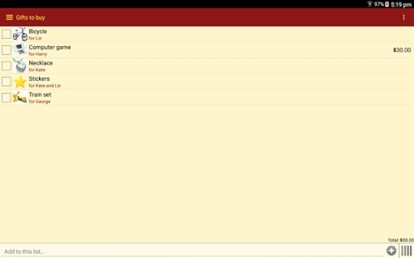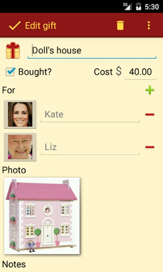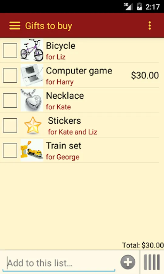 Gift List does not send your information to any third party. All data is stored locally on your device.
