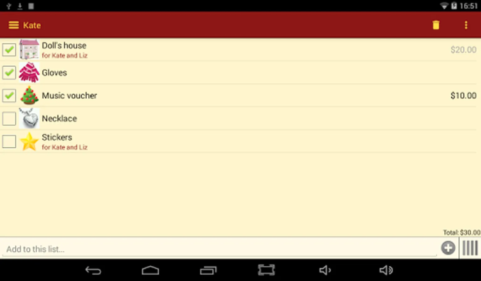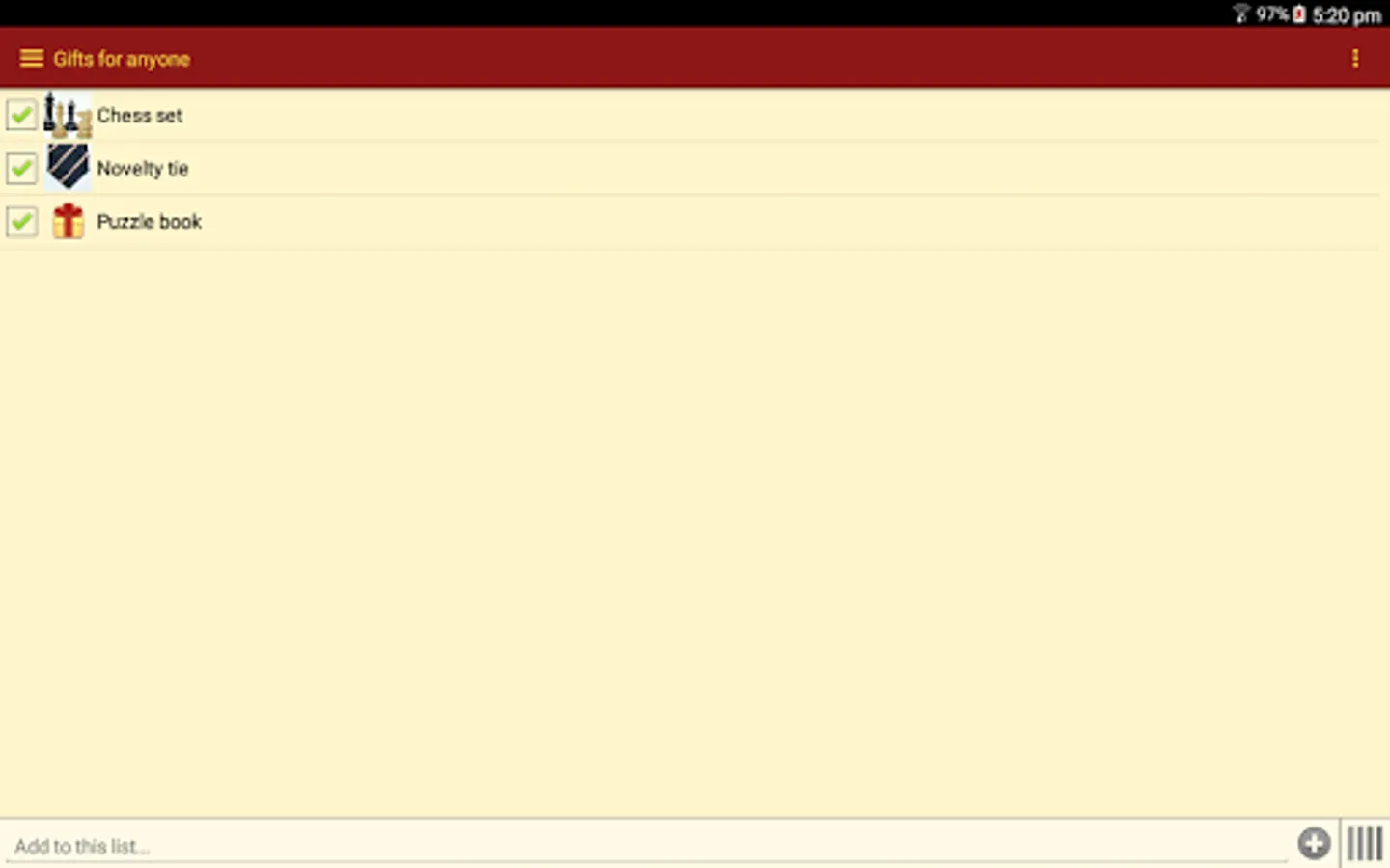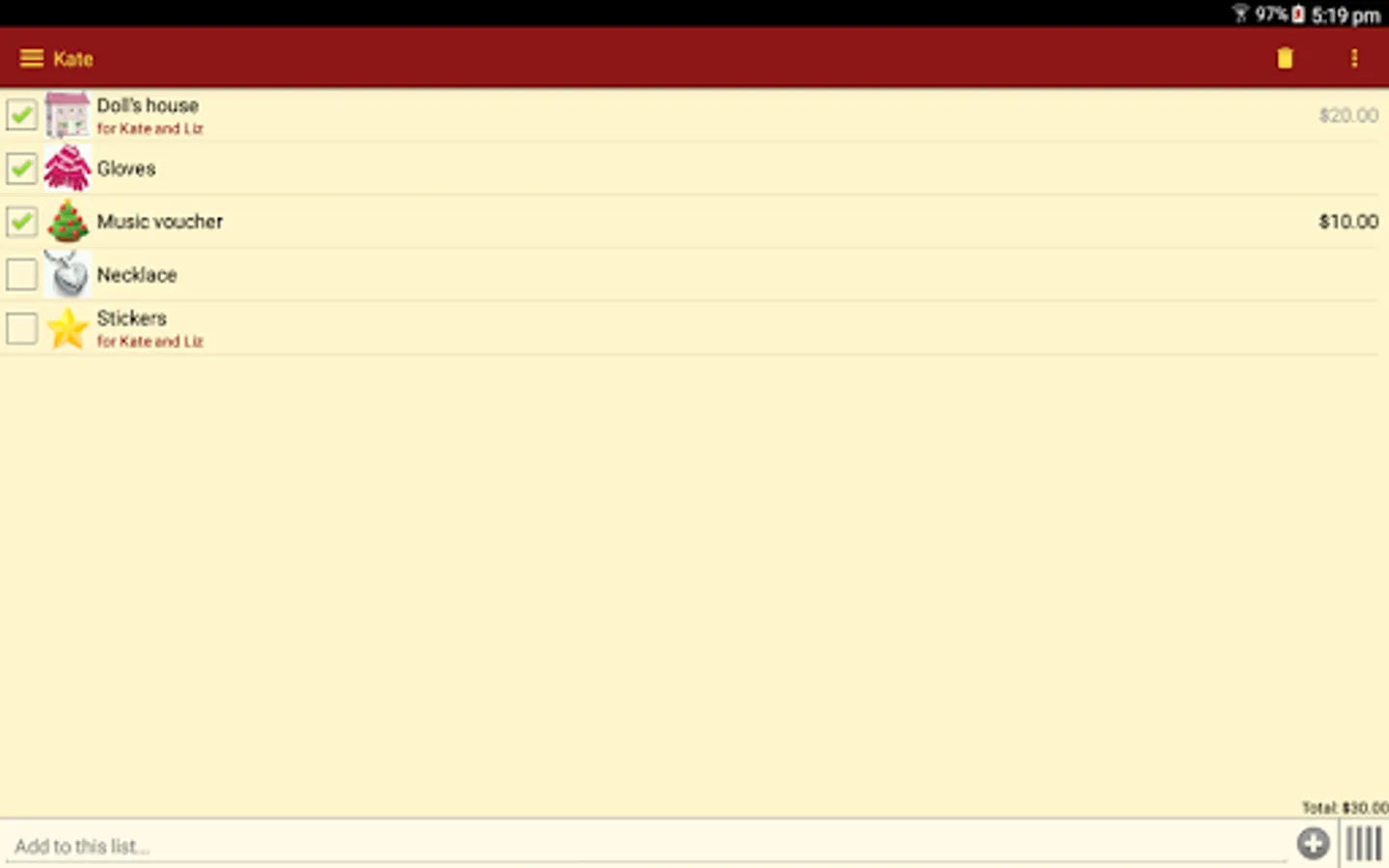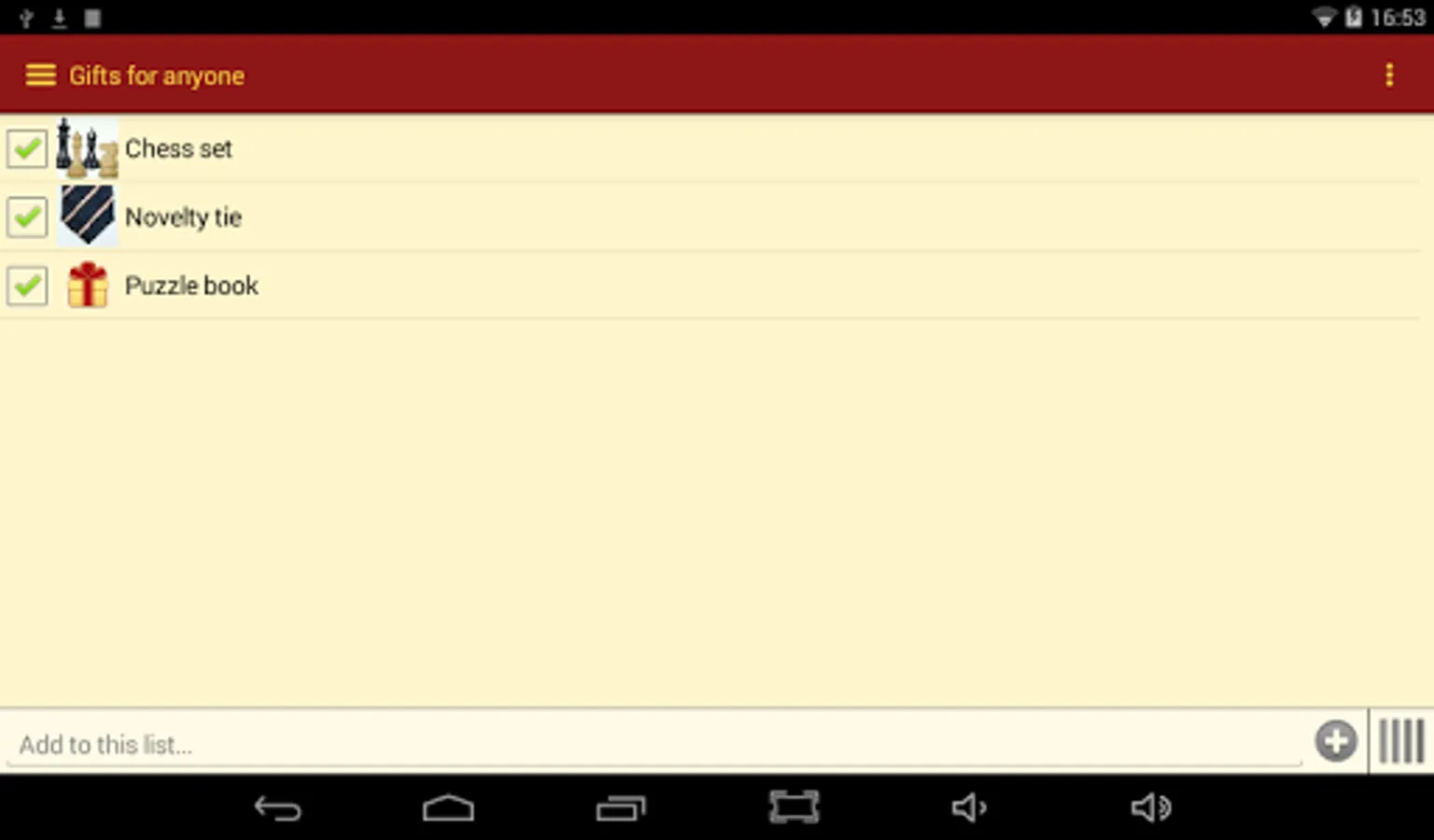 Gift List does not send your information to any third party. All data is stored locally on your device.