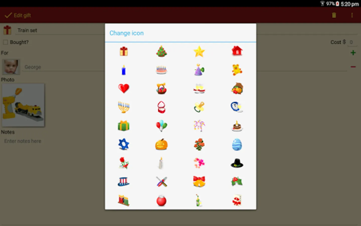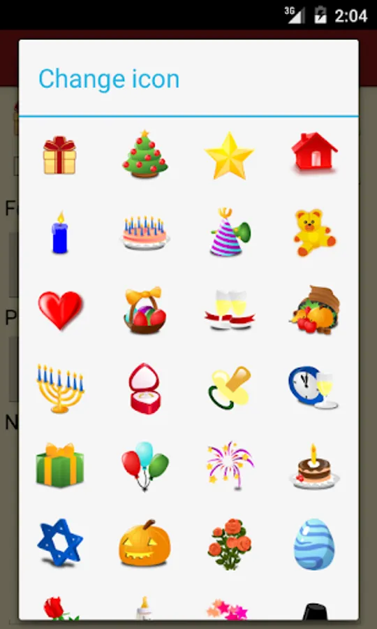 • Icons for different occasions