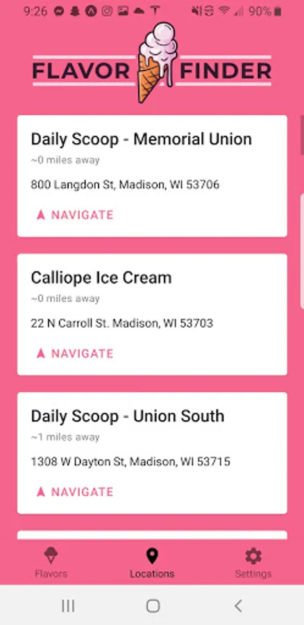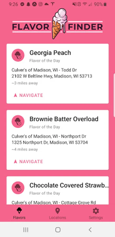 With an emphasis on limited-time flavors, such as Flavors of the Day, Flavor Finder allows you to search nearby ice cream shops for current flavors and specials.