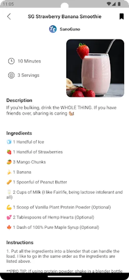 • Save other people’s recipes and workouts
