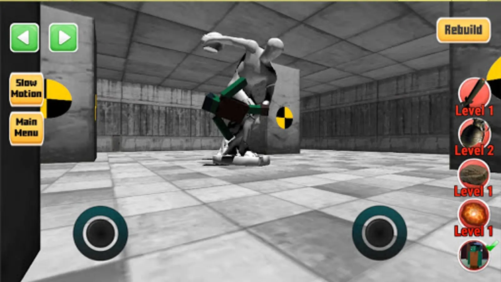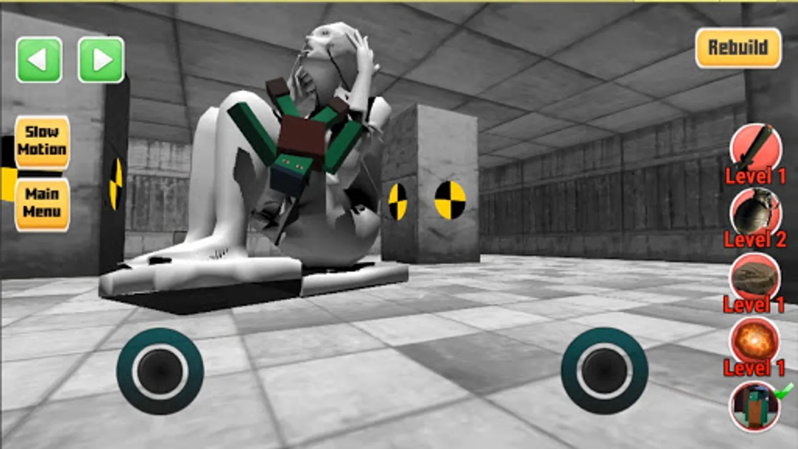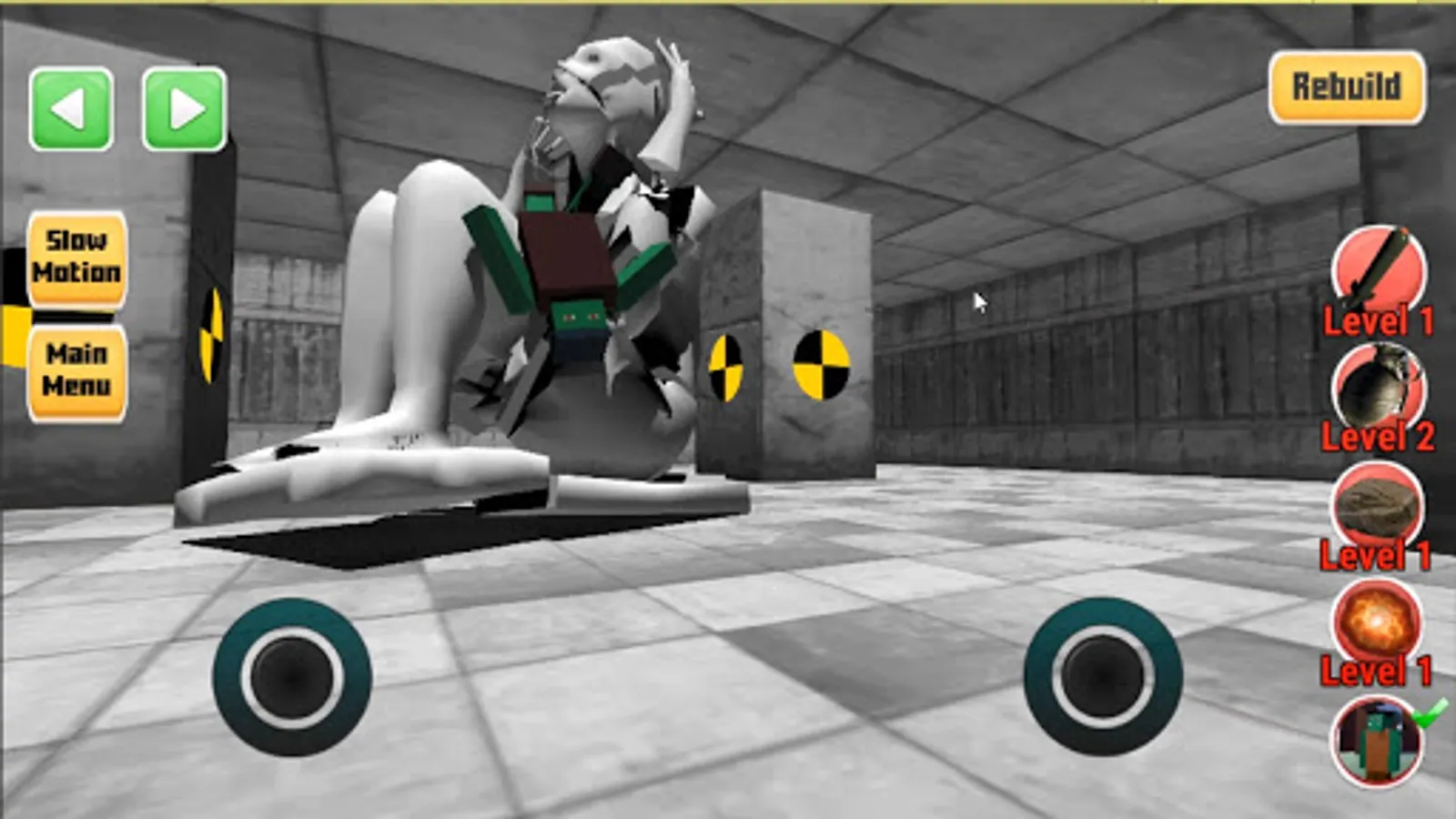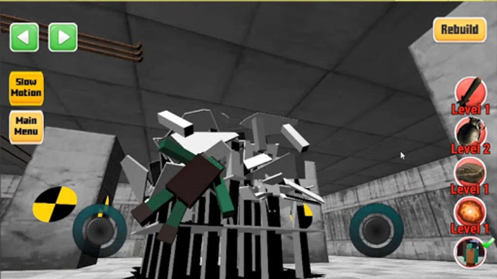 A physics simulation game where you can walk around and destroy buildings and statues. Shoot them using stones, grenades, missiles and even throwing a ragdoll into them! Now you can customize the power of the weapons. There is a great ragdoll physics simulation. And we added a slow-motion button to maximize your enjoyment.