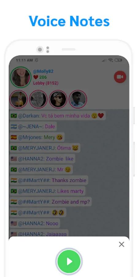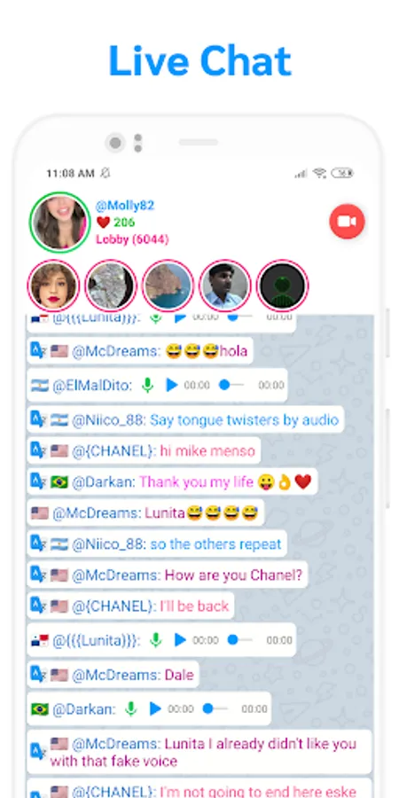 Thousands of broadcasters from different parts and cultures, streaming live video from their phones, join and discover new people!