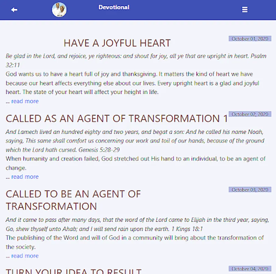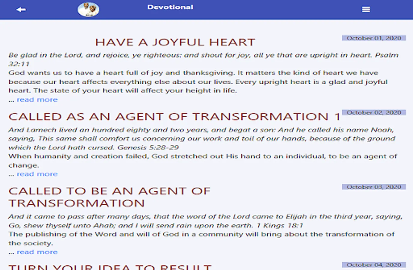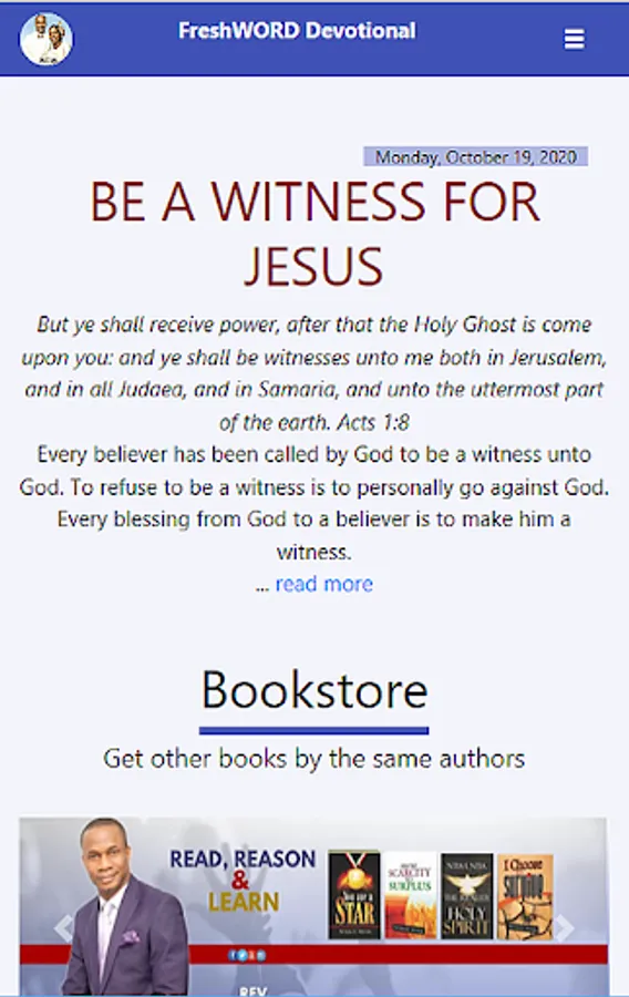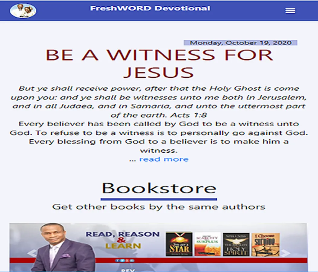 Freshword devotional App is a christian app that encourages daily bible reading and promotes intimacy with God. It is more than a study guide, but a mantle that has the potential to motivates, inspires and stirs you up to the fullness of God.