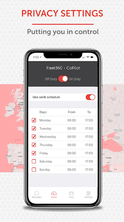 CoPilot runs in the background and uses GPS and low-power sensing methods to reduce battery consumption. A valid registration token is needed to use this app which is typically provided by your fleet manager.