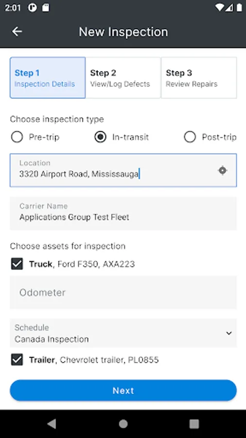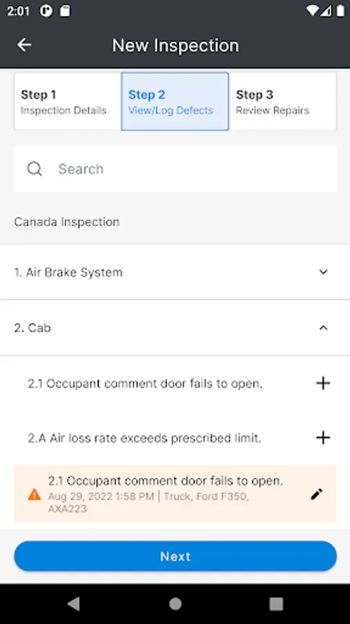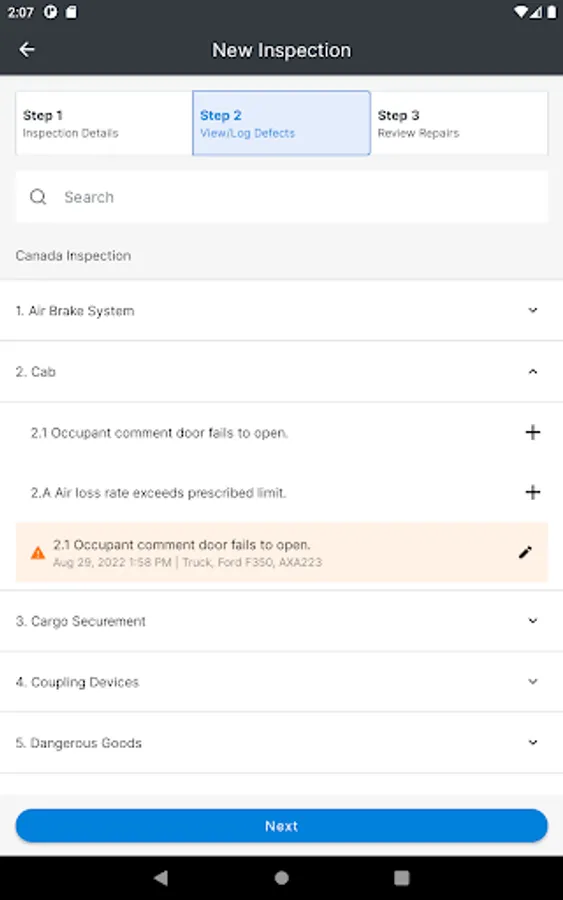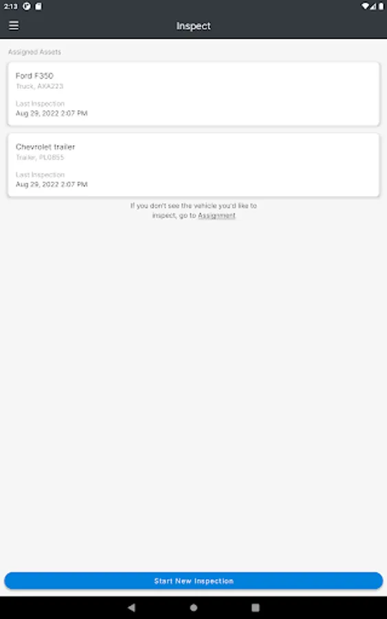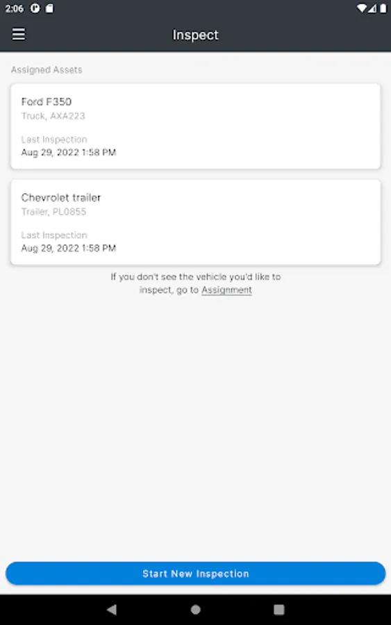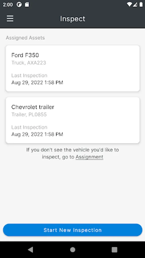 The FC Inspect mobile app allows you to assign the assets you will be using for the day to yourself and complete your Driver Vehicle Inspection Reports (DVIRs) to stay compliant with the government regulations in the U.S. and Canada.