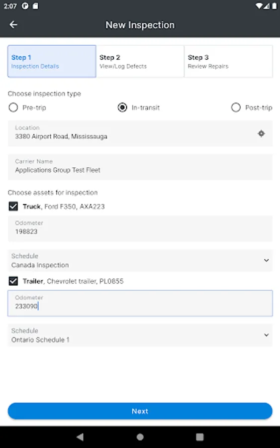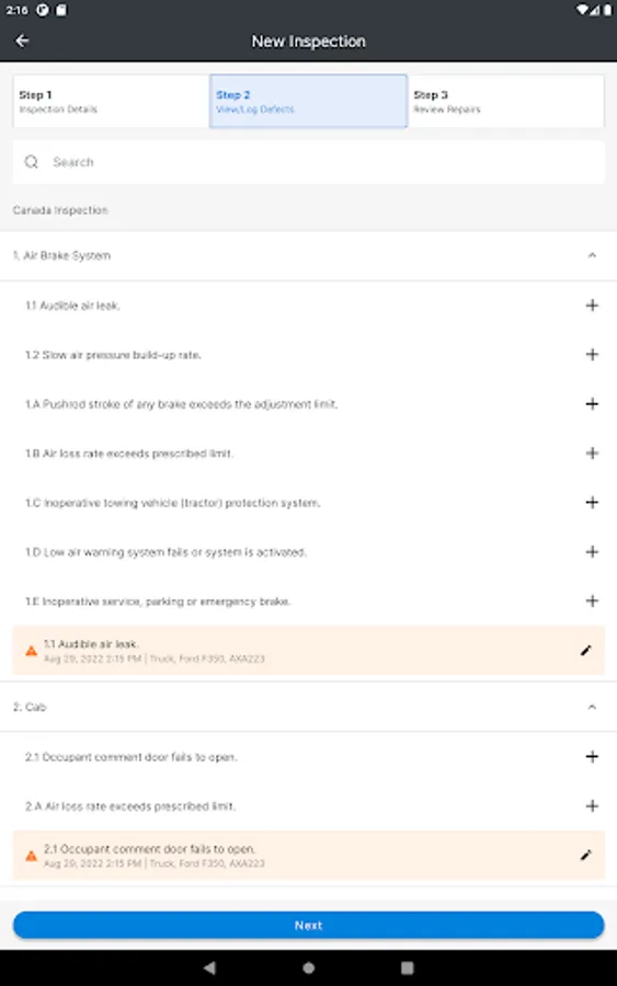 Using the FC Inspect app, you can easily perform pre/post-trip inspections for all your assigned assets on the same DVIR. You can log any minor or major defects, and sign off on the report, providing fleet managers at the head-office an instant status update.