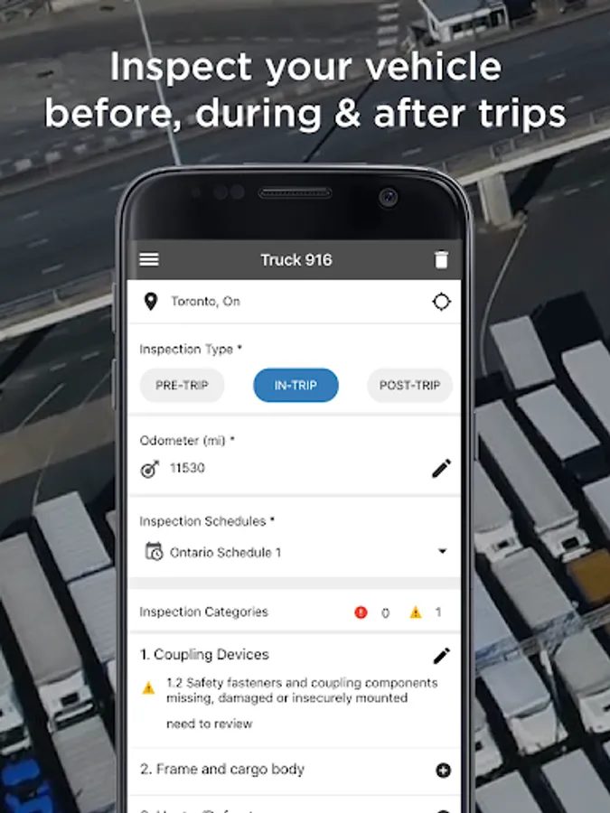 Fleet Complete Inspect App is an easy way to completing your Driver Vehicle Inspection Reports (DVIR) and meet Canadian and the U.S mandates. Log the defects and sign off on the report right in your smartphone, having all the data appear on the Fleet Complete Web for management review. No paper trail, no stress, easy compliance.