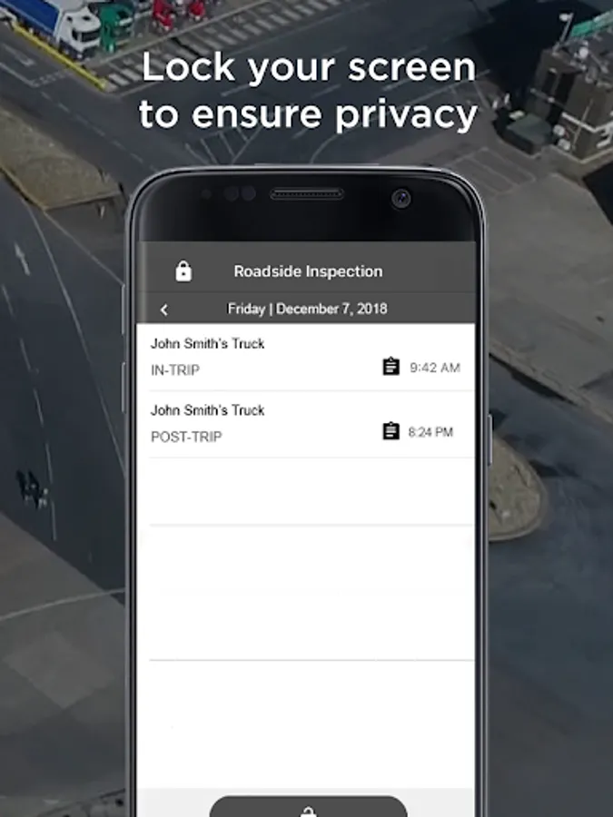 During a roadside inspection, the driver is able to lock the Fleet Complete Inspect application for the inspector’s review and only display the required information, keeping their private data secure.