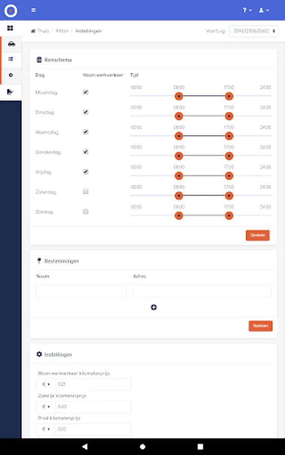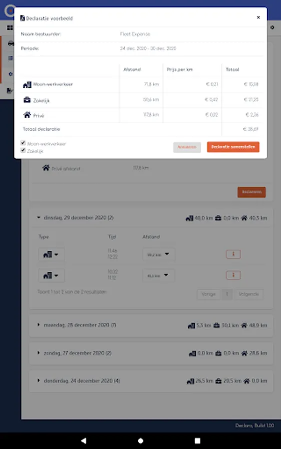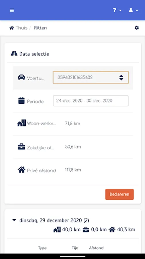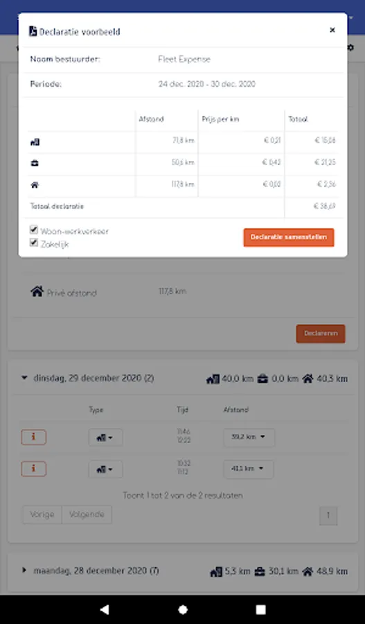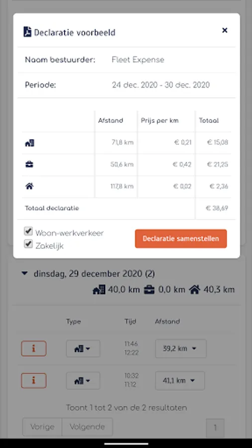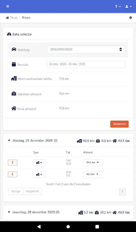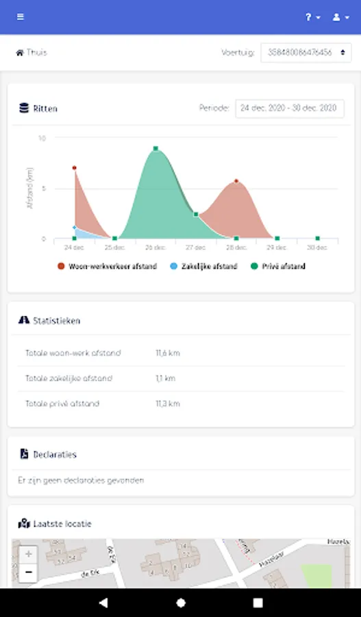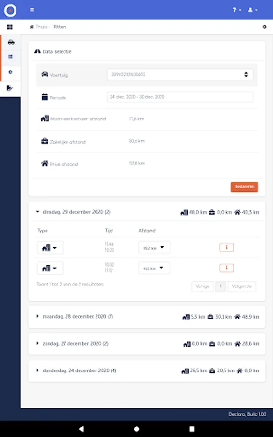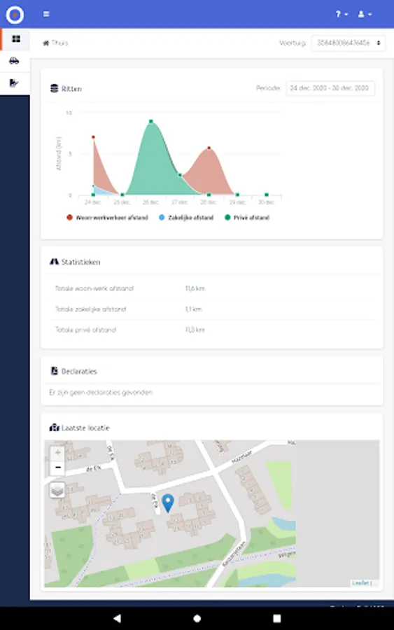All your journeys are automatically tracked by means of a Declaro GPS Tracker. You no longer need to keep paper records and manually record all your journeys.