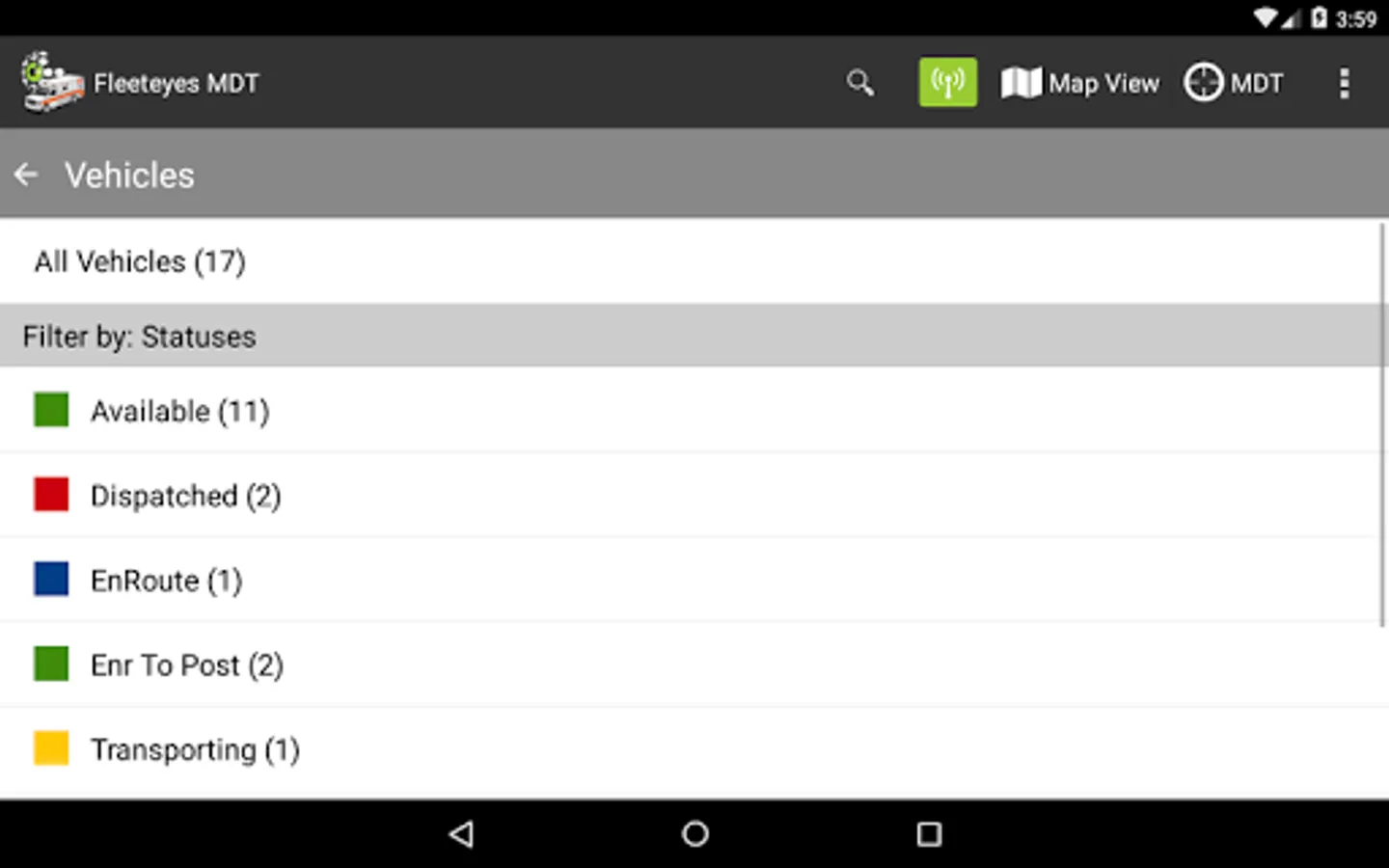 With the Fleeteyes app, you can manage emergency ground vehicles and aircraft, from dispatch to drop-off, from the palm of your hand. Fleeteyes makes it easy to perform critical tasks that were previously possible only from a communications center or a vehicle with an expensive mobile data computer (MDC). The app provides incident data, vehicle statuses and mapping capabilities across all disciplines to support a common operating picture.