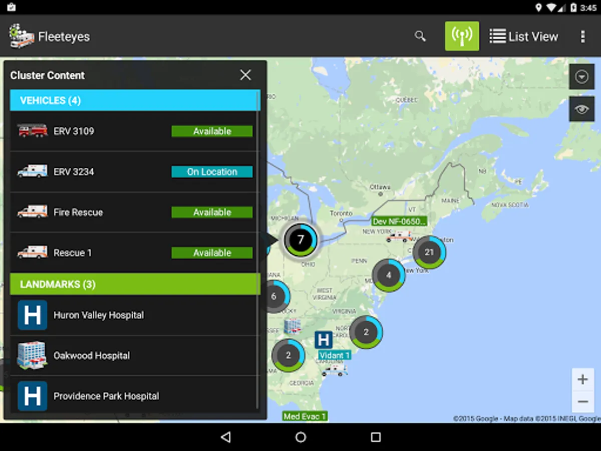 Fleeteyes is a market-leading vehicle management solution that offers a proven set of tools for efficient tracking of EMS vehicles. Seamless integration with a variety of CAD systems and GPS devices, including Garmin® navigators and AVL-capable modems, ensures the effective exchange of critical information between dispatch systems and vehicle crews. Fleeteyes provides rich visual data on vehicle location, weather and traffic, as well as turn-by-turn directions to incident sites in conjunction with Google Maps™.