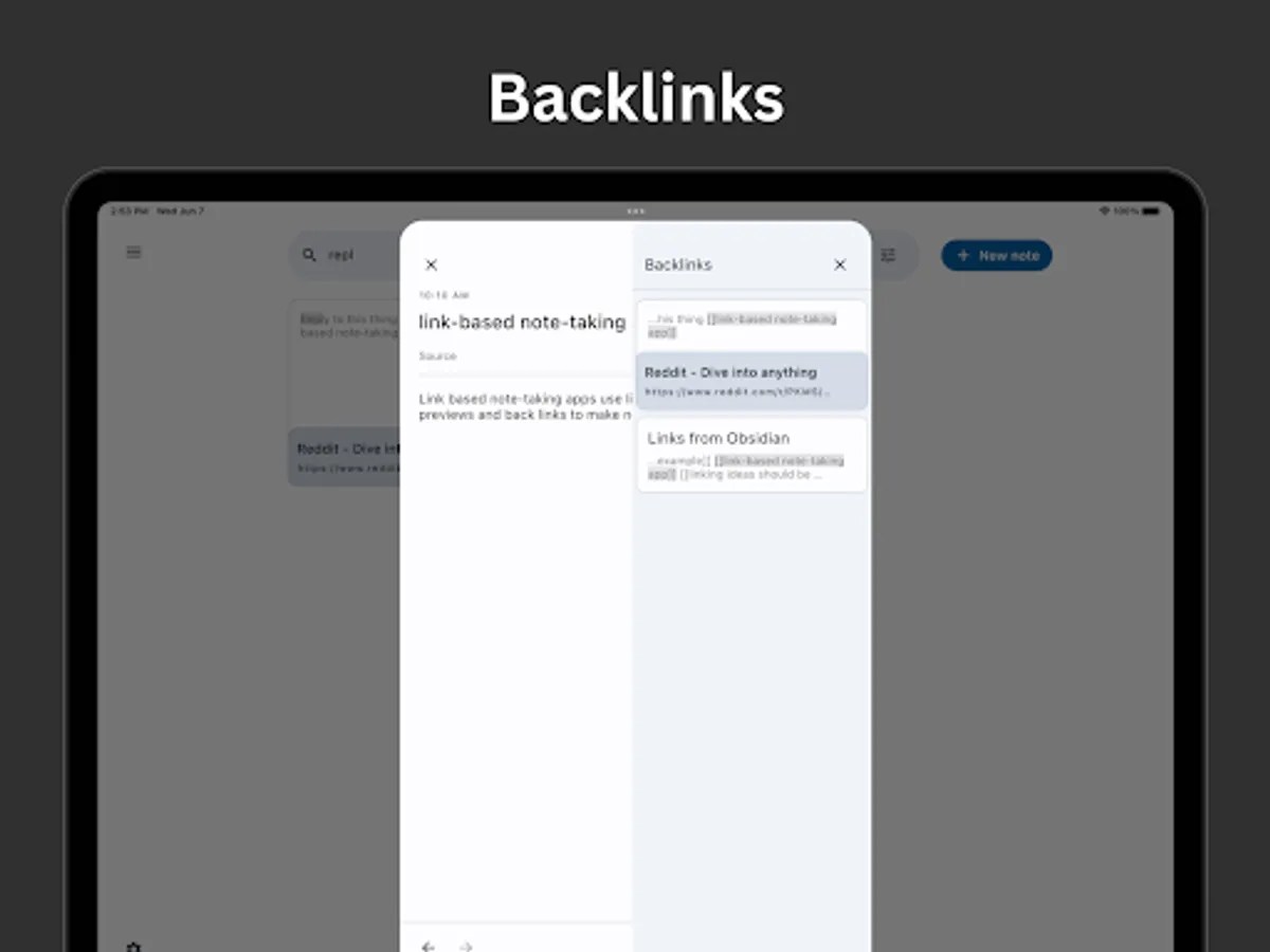 - Bi-Directional Linking: Create a web of connected ideas. Our bi-directional linking feature allows for link previews and backlinks, making it easy to navigate and expand your notes.