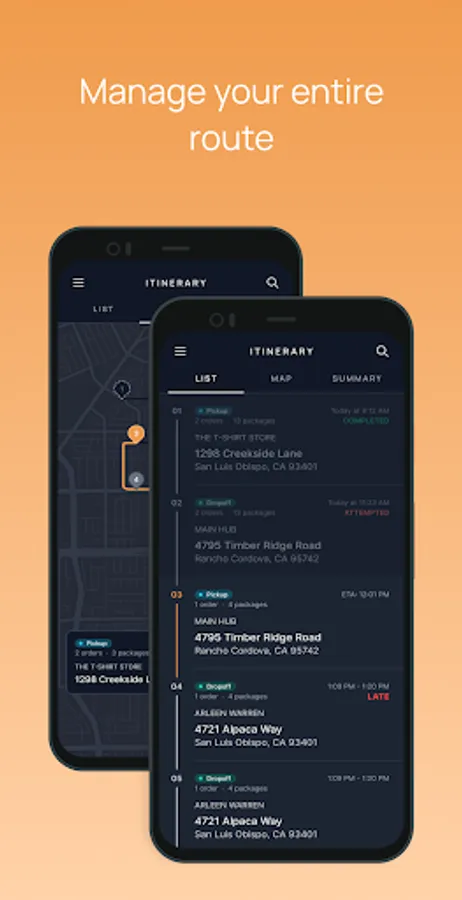 Keep your deliveries on track and on time. With options to view stops as a list or on a map, drivers can use what works best for them to navigate along optimized routes. Plus, they can report task statuses from the FleetRunnr interface.