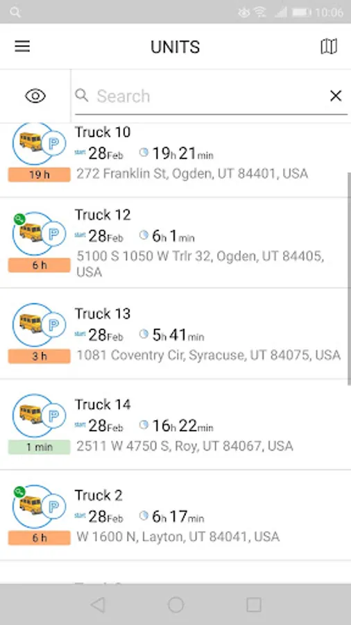 Unit list management. Get all the necessary information on movement, ignition state, data, and unit location in real time.