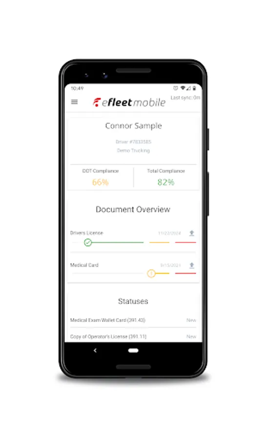 eFleet Mobile gives the drivers of Fleetworthy Solutions Customers the ability to easily provide their documents for their DQ record. They can take pictures of their documents, upload them, and see their Compliance Scores. They can also be notified when documents are missing, fail audit, or are expiring soon.