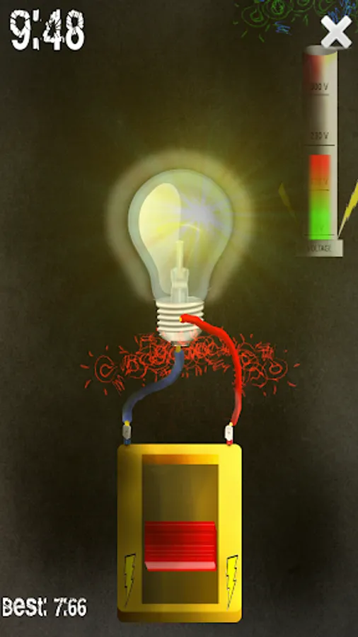 Main goal of this game is to break the bulb as fast as you can. You can ACHIEVE this red button by sliding up and down. You can check the progress by looking on a voltmeter.